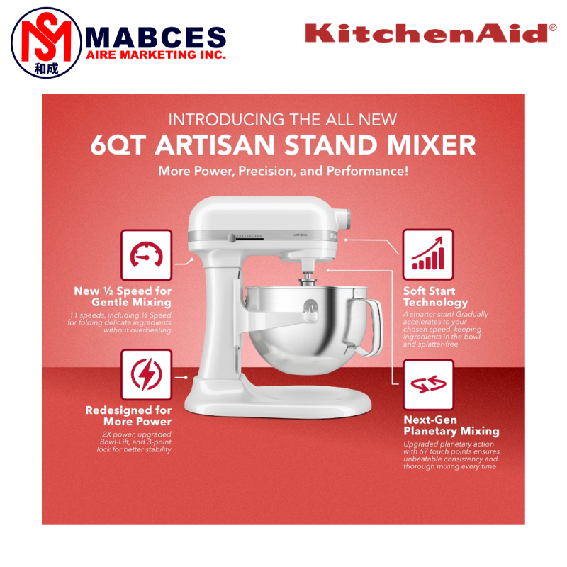 • Redesigned from the inside out, KitchenAid’s most powerful home bowl-lift stand mixer with 1.5x more power in the bowl than before*